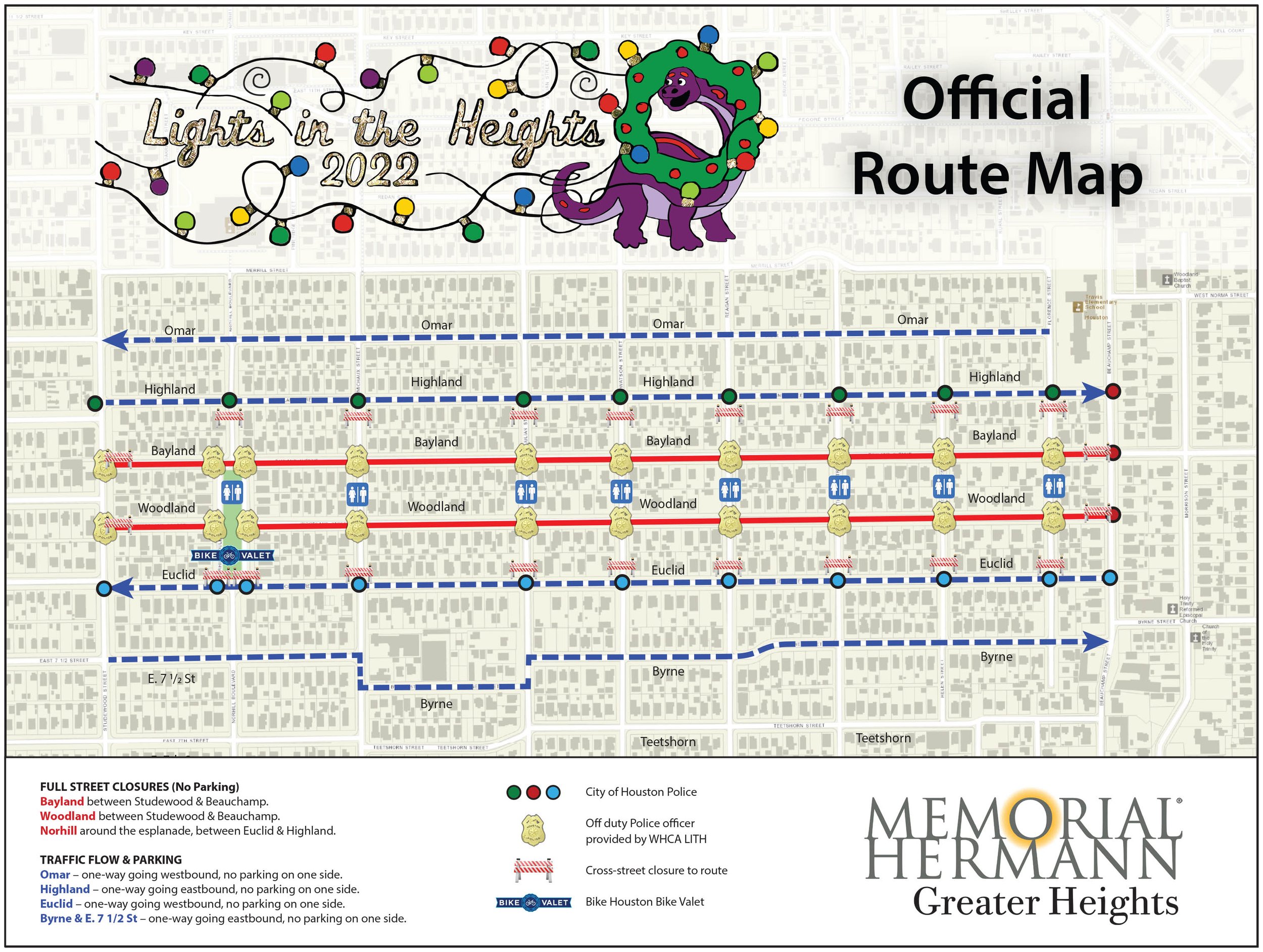 If you live on the route you will be allowed access to and from your property; however, you will not be permitted to park on the event route streets. Please have your driver‘s license or a utility bill with your street address to show to the officer.