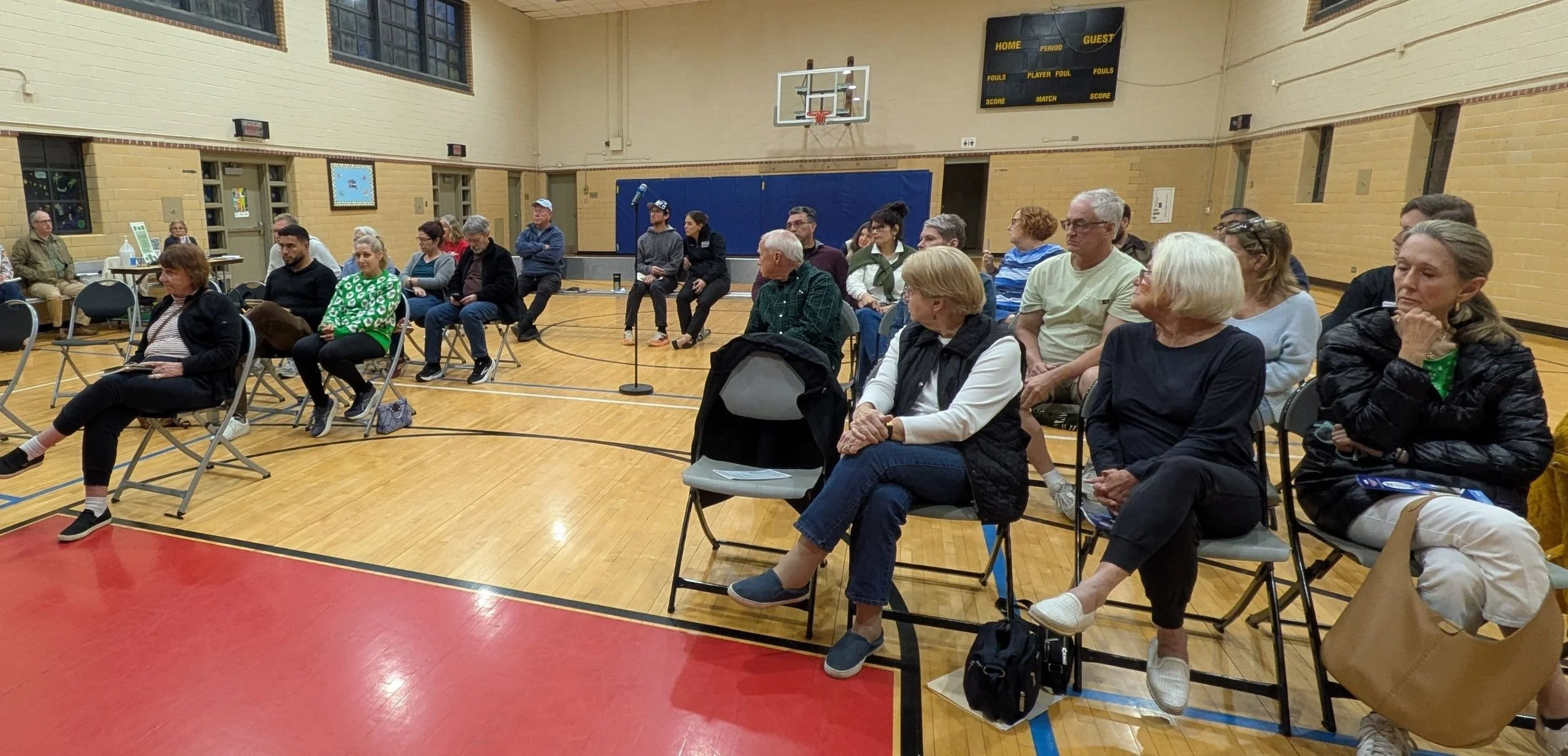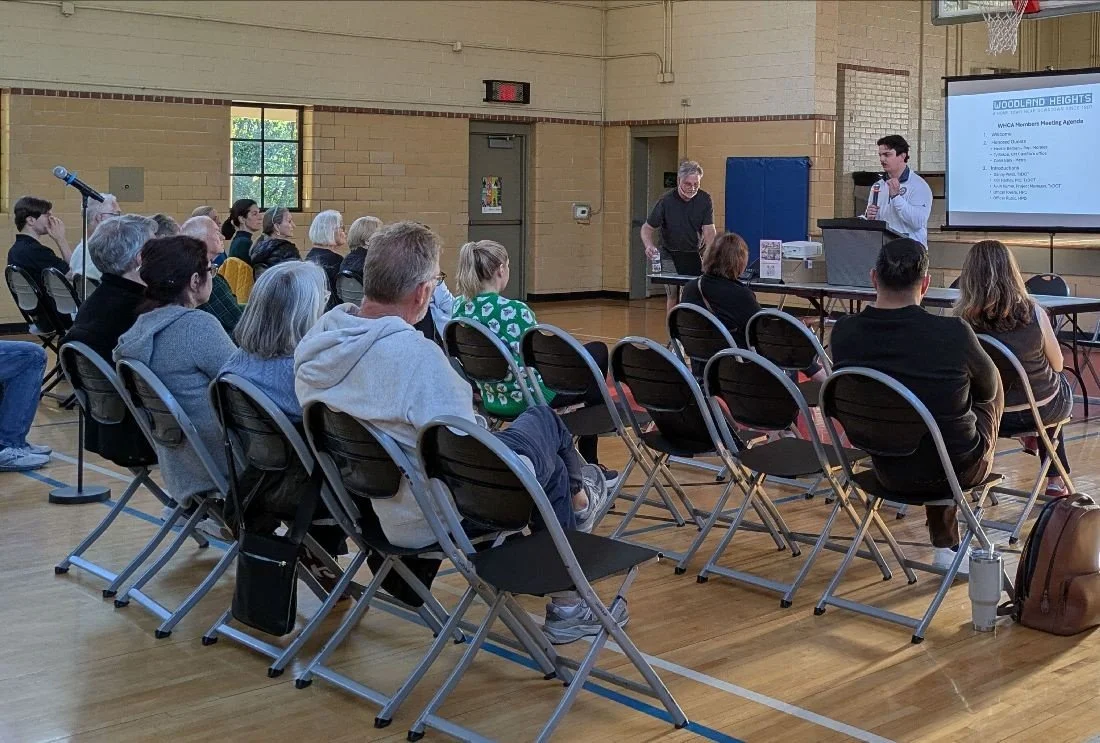 For the past year we would normally meet at Zion Lutheran Church on Beauchamp Street. However, Zion recently started some renovations. As a result, they could not offer space for the crowd we anticipated. Kelli Fereday at Friends of Woodland Park helped us to secure access to the Woodland Park Community Center for this gathering. It’s a good thing that we arranged a considerable space, since over 50 neighbors turned up to get answers to their questions!